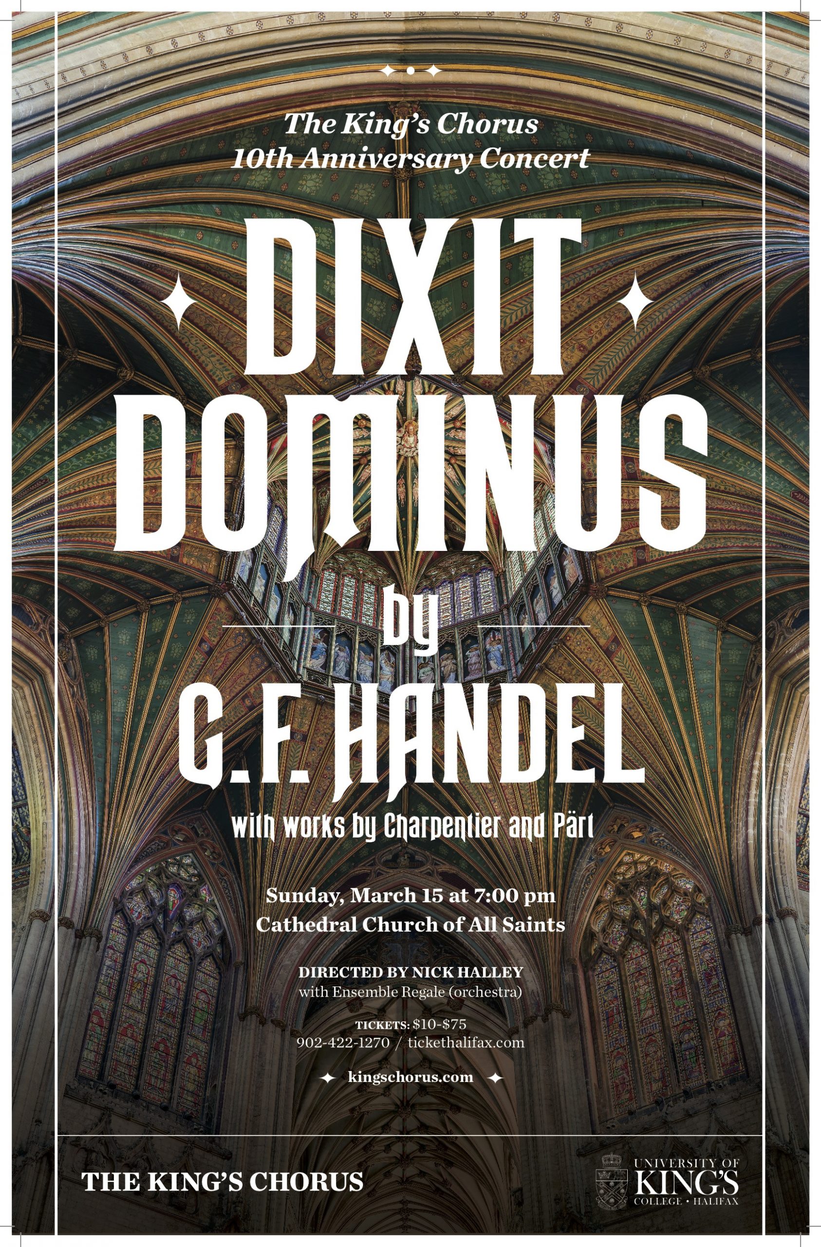 TICKETS: $10 student ($15 at the door), $20 adult ($25 at the door), $40 priority, $75 patron. Available online at: https://www.tickethalifax.com/events/105296718/the-kings-chorus-presents-dixit-dominus-by-gf-handel